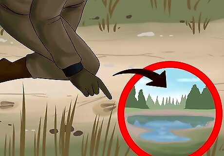 Scout out a promising hunting area. The first step in hunting mule deer is figuring out where to find some of them, of course. Depending on geography, mule deer tend to forage freely at night and then bed down for the day in high grass, brush, or thicket. Learn to identify “muley” tracks and follow them where they lead you. Examine the plant life for signs of foraging as well. Mule deer need to have access to water every day, so a creek, stream, pond, spring, or other water source can make a good starting point for your search. Look for tracks to and from the water source.