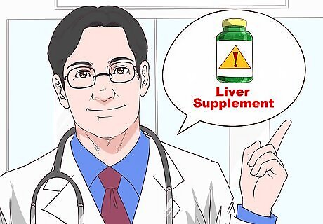 Be wary of supplements that claim to give liver support. Many of these herbal supplements do not have a lot of scientific research to back up their claims. It is better to focus on other ways to support your liver function, such as eating a healthy diet and getting enough exercise. Talk to your doctor about supplements before taking them. They can give you specific guidance about safe dosage and whether particular supplements are right for you. For example, milk thistle may help your liver detox. It's a common supplement that is generally safe, but it doesn't benefit everyone the same way. Check with your doctor if you're thinking about taking it. There are a variety of supplements that can actually decrease your liver function. Be especially careful to avoid supplements that contain chaparral, comfrey, or mistletoe, as these can actually be toxic to the liver. Kava kava is a common supplement that can harm the liver in large doses. However, it's generally safe in small doses. Also avoid vitamin supplements that have very high doses of vitamins, as these will go through the liver and force it to work harder than normal.