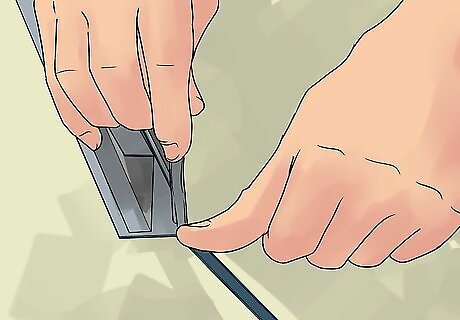 Cut the tracks to the appropriate size, if necessary. Measure the width at the bottom of the shower opening. Transfer that measurement to the bottom shower door track and mark with your marking pen. If the track fits to size, move forward with installation. If it's too long, you'll need to cut it to the appropriate length. Using a hacksaw, carefully cut the rail at the mark you made. Be sure the rail is held firmly as you cut to avoid damage to the rail or the saw. Use a file to remove the burrs from all metal pieces you cut.