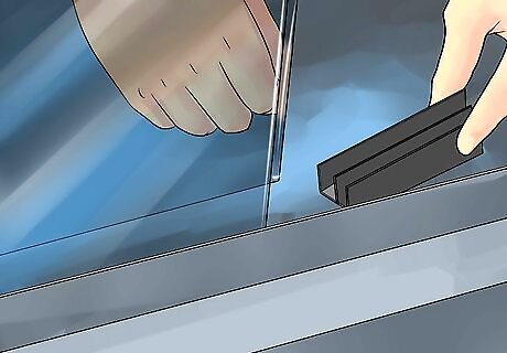 Install the door swinging door. Swinging doors will need to be installed differently, according to the kit that you've purchased, so it's important to read the instructions that come with it and follow the directions accordingly. The door needs to be installed so it pivots outward, but for some kits that'll be on the left side and for some that'll be on the right side, and the mechanism works differently, depending. With some, the door will just snap into place, while screws will be used for other kits. In most swinging door kits, a strip of rubber will be slid into the wall track opposite the pivot point, held with screws in some cases.