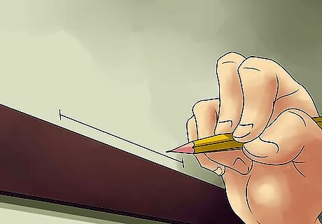 Measure and mark where the track will go. Before you go attaching the tracks on forever, you need to place them temporarily and mark where they need to go. Place the bottom track along the base of the shower opening with the higher lip of the track facing outward. Make sure the track sits flat along the surface. There should be about ⁄8 inch (0.3 cm) of play at each end. Temporarily tack the bottom track into place with masking tape, then mark the position with your marking pen along the inner and outer edges. Do not remove the bottom track yet. The wall tracks should be pre-cut to size from the factory. Slide the wall tracks into position with the bottom track. Make sure the wall tracks fit the bottom track exactly. Use your level to check for plumb. Holding each track firmly, use your marking pen to mark the mounting hole locations on each wall then set the wall tracks aside.