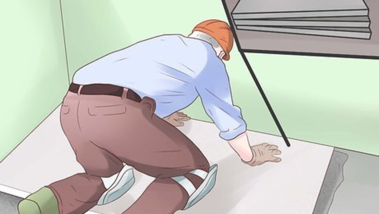 Lay down some latex-modified thinset mortar onto the subfloor. If you're mixing mortar from scratch, add enough water to the dry mortar so that the final consistency resembles toothpaste or peanut butter. Then, let the mortar slake, or rest, for 10 minutes. Use a trowel with notches about the same size as the cement board thickness to lay down the mortar. Lay only enough mortar that you can safely cover in about 10 minutes. This is the time it will take the mortar to start hardening.