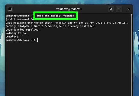 Type sudo dnf install flatpak and press ↵ Enter. This installs the Flatpak manager. Some Linux distros already have Flatpak manager installed. If it is already installed, you don't need to install it again.