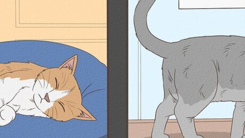 Switch out the cats. After two to three days of interaction through the doors, switch the cats between confinement areas. Let the new cat explore the house while the old cats are placed in the confinement area. This will get your new cat used to its new home and allow the other cats to get used to the new cat's scent. Switch out the cats several times a day for a few days. Make sure you only let the new cat roam around the house when you are home to supervise.