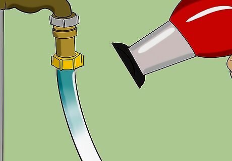 Use a heat gun on the hose connections. Point the heat gun at the end of the hose that connects to your RV and heat it for about 5-10 minutes. Move the nozzle of the heat gun all around the hose so the ice melts. Once one end of the hose is thawed, heat the other end of your hose to melt the ice inside. You can buy a heat gun from your local hardware store. If you don't have a heat gun, you can also use a hair dryer but it may take longer to thaw.