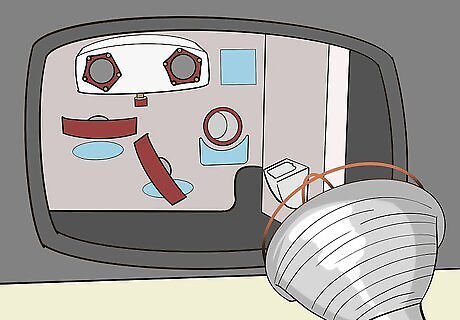 Keep a heat lamp in the water compartment to melt any ice. The water valves are usually located in an exterior compartment on the RV. While some of these compartments may be heated when you run your RV, they may still freeze if it gets too cold. Plug in a small space heater or heat lamp in the compartment to keep it warm or else your valves could freeze and prevent water from running through them. Make sure the heater or lamp is unplugged when you aren't using it. If your tanks are outside or exposed, you may not be able to use a heater or lamp to keep them thawed. If the valves do freeze, try pouring a small amount of hot water on them or using a heat gun to melt anything that's frozen.