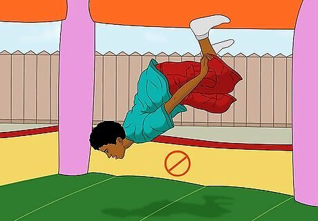 Avoid flips inside a bounce house. Children should not be allowed to perform flips, tumbles, or other acrobatics inside a bounce house. When children jump and flip in the air, do cartwheels, or other similar moves, they increase the risk of hitting other children or falling. Serious neck and head injuries in bounce houses are usually caused by acrobatics. Kids can fall or bounce on their head or neck, or they may knock another child in the head with their foot as they flip through the air.