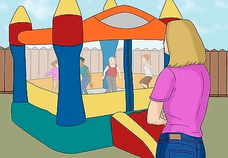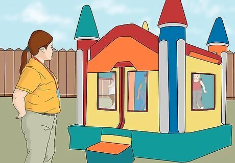 Assign an adult to watch the bounce house. If you rent a bounce house, you may not have an operator on site who works for the company. An adult should monitor the bounce house to make sure kids are using it properly. The adult will also be nearby if an injury occurs. Even if an operator is provided by a company, you should assign an adult to watch the bounce house. This helps provide an extra set of eyes on the children. Remember that bounce houses aren't a distraction so the parents can take a break. You shouldn't just let kids go bounce without any adult supervision. According to most experts, the main reason for bounce house injuries is misuse due to mistakes and lack of supervision. With proper supervision and usage, bounce houses are safe for children.