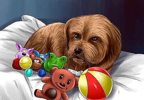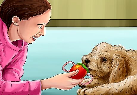 Rotate the toys out regularly. Even if your dog has a basket full of toys, it may get bored with them if they’re out all the time. To keep your dog interested in the toys, leave out only a few at a time and rotate them about once a week. If your dog has a favorite toy, though, consider leaving that one out all the time. Replace toys when they are worn and damaged.