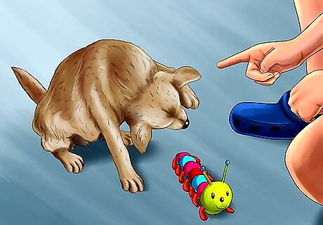 Discipline your dog in the moment. You will need to discipline your dog if it takes your kids’ toys. When you discipline your dog is important, though—do so only if you actually see your dog take the toy. If you discipline your dog after the fact, your dog will not understand why it’s in trouble. Instead, your dog will become fearful of you or maybe even aggressive towards you. It may be challenging to catch your dog in the act.