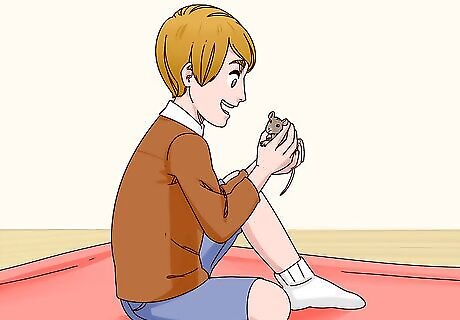 Have children sit on the ground before handling the mouse. Mice can easily jump or fall out of a child’s hands. This is particularly dangerous if the child is standing up or has the mouse on a table. If the mouse falls, it’s possible that they won’t survive the drop. It might be helpful to lay down a towel or blanket where the child will be sitting, in case the mouse falls or leaves droppings.