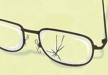 Replace damaged eyeglasses. Even if you haven't experienced any vision complications, you should get new glasses whenever the pair you have is damaged. Scratches or other damage to the lenses are especially important to address, as they may lead to vision complications or injury. Similarly, if your eyeglasses no longer fit as well as they used to, it may be time for either new glasses or an adjustment to the glasses you have. If ever you have a question about the safety or fit of your eyeglasses, you can likely stop by your optometrist's office to have them look at your glasses without scheduling a full exam. Call ahead to make sure.