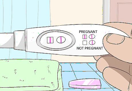 Determine if you have two or more of the early signs of pregnancy. If you do, take an at-home pregnancy test. With most tests, you'll place the end of a dipstick into a small container of your urine, or move a testing stick into your urine flow. Within a few minutes, the dipstick should indicate results by changing colors, showing the words "pregnant" or "not pregnant" on the stick, or symbols. Most pregnancy tests will not be reliably accurate until the fifth week of pregnancy. Instructions for home pregnancy tests vary. Follow the directions on the test you choose. Home pregnancy tests check for the presence of the hormone human chorionic gonadotropin (HCG) which accompanies pregnancy.
