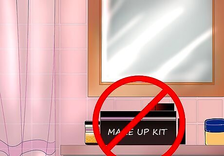 Avoid storing makeup in the bathroom. Although storing your makeup in the bathroom can be convenient, it is not necessarily the best idea. The bathroom has high levels of airborne bacteria that can contaminate your makeup and beauty products. The high exposure to bacteria can cause makeup products to expire sooner than they ordinarily would. Store makeup in your closet or a linen closet outside of the bathroom to keep it cool and dry. You can store makeup in a dresser, set of drawers, or chest as an alternative.