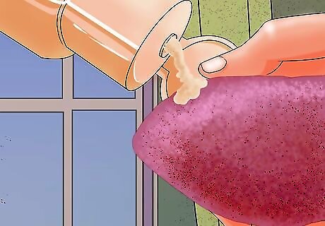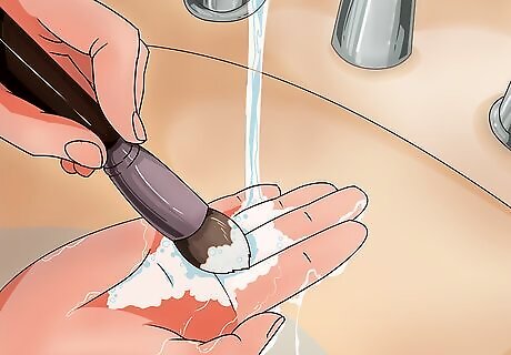 Pour out instead of dipping in. When using liquid makeup, pour a small amount of makeup, as much as you intend to use, onto a makeup mixing palette. This will keep the bacteria out of the makeup bottle. Set the mixing palette on a flat surface. Pour a small amount of the desired product onto the surface of the palette, taking care not to set it too close to the edge. Dip your makeup brush into the product and apply it to your face (or wherever you are using the makeup).