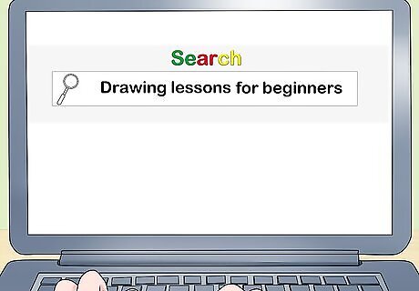 Search online for specific kinds of drawing instruction. Base your search query on your skill level and drawing interests, and browse your results. You can be specific or general with your searches. For beginners, search for something like "Drawing lessons for beginners," "Free basic illustration tutorials," and "Beginner drawing tutorials. For intermediate artists, you can search for something like, "How to draw perspective," "Intermediate drawing lessons," and "Drawing landscapes." For advanced drawers, search for "Drawing mastery course," "Advanced drawing techniques," and "Drawing anatomy."