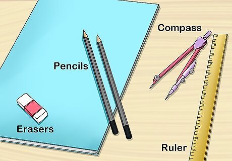 Gather the materials outlined by the course. After you've selected your course, review the required materials detailed on the course information page. The instructions will let you know if you need any particular pencils or erasers, or additional supplies like a ruler or compass. Beginner courses likely will have you use pencils, paper, and erasers. More advanced courses will list other materials like charcoal or pen and ink.
