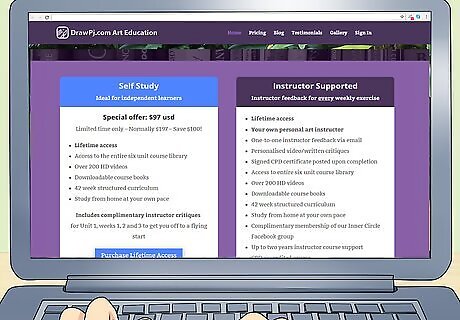 Search for paid drawing courses based on your skill level and interests. Type “Drawing courses” into Google, and look for an interesting course. Search for things like, "drawing course for beginner" and "advanced online drawing course."