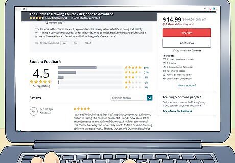 Choose quality courses by reviewing the course and reading reviews. When you find a course that interests you, check to see if there are any ratings and reviews written from previous students. Look for when the course was last updated and how many students have enrolled in total. Read the instructor biography if available. You can also scroll through the course to get an idea of what it will cover. Some websites will have a Frequently Asked Questions section which can be helpful when deciding what course to take. Keep an eye out for scammers! While there are a ton of great online sources, sometimes you will find sites trying to trick you. Do a search on the particular course you've found to make sure it is legitimate.