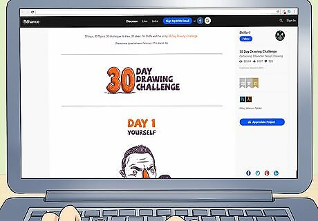 Select a website with lessons that meet your learning style. There are countless websites that can get you started. You will get the best instruction if you select websites that seem easy-to-follow and fun. You can follow along with step-by-step instructions with visual aids, watch a video tutorial, download printable PDF instructions, or use a combination approach. Use websites like DeviantArt, Drawspace, Drawing Coach, Academy of Art University, Daily Sketch Challenge, and Pinterest.