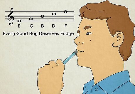 Combine letters and nonsense sentences to remember complex topics. If you have to memorize a list of information or a more abstract concept, abbreviate the first letter of each item. You can also try making a funny sentence that’s easier to remember. Since you’re associating visuals and images with the concept, you’ll have an easier time remembering. Since you only have to remember shorter phrases, you won’t spend as much time on the difficult subjects. For example, if you’re learning music and want to learn the notes on a treble clef, you may use the sentence “Every Good Boy Deserves Fudge” to remember the notes E, G, B, D, and F.