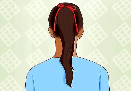 Add bows and ribbons to your hair. It's a good idea to put a bow in your hair. Many cheerleader's ponytails are tied by ribbons or bows. Take a large, bright colored ribbon and wrap it around your ponytail. Tie it an attractive looking bow-shape. If you're not into bows or ribbons, consider a headband or barrette instead.