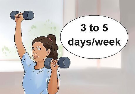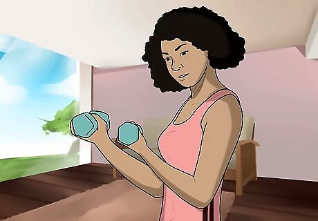 Rest for a minute or less between each set. Resting allows you to catch your breath, but if you are trying to lose weight, avoid resting for too long. Keep your breaks to no more than a minute. If you need longer to rest, your weights may be too heavy.