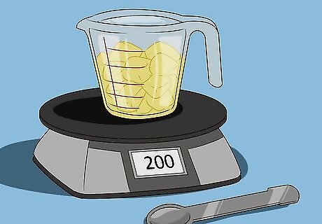 Use measuring cups, spoons, and a food scale to determine serving sizes. Even small differences in portion sizes can make a big difference in calories! After a while, you'll get a better idea of what servings of different foods look like, so you can visually eat the right amount without overdoing it. All packaged food has nutritional information about servings sizes and calories on it, so you can look at that when you're measuring and weighing your portions. Otherwise, you can look up caloric information for different foods online.
