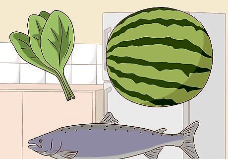 Ensure you are getting enough water. If you are constantly dehydrated, your skin will suffer. Dehydration leads to dry skin, which in turn makes wrinkles to form easily. You don't need to drink extra water to help your skin. You just need to drink enough to make sure you are hydrated. Men should drink 13 cups of water a day, while women should consume 9 cups of water a day.