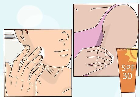 Put a hat on. Similarly, adding shade to your face can help protect your skin from the sun. Try wearing a hat when you venture outside, especially on very sunny days.