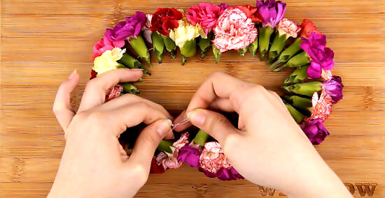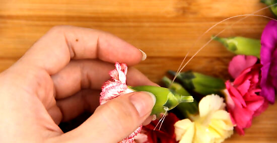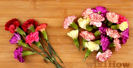 Cut the stems off the carnations. Use a pair of scissors to cut the stems as close to the flower head as possible. Discard the stems in a compost bin. If you can buy carnation heads, you’ll save yourself the hassle of cutting off stems.