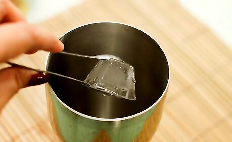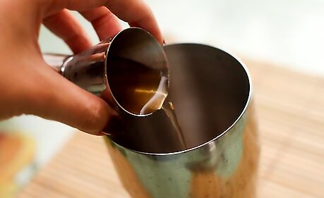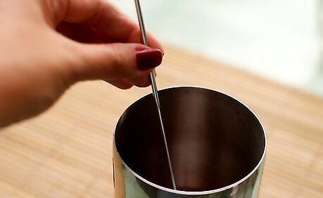 Place the strainer or sieve on top of your glass and strain the contents into a cocktail glass.
