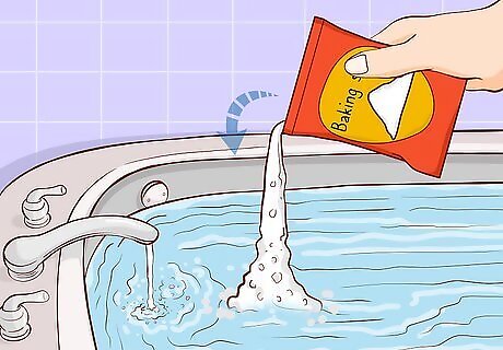 Add the baking soda just before the bath finishes filling. Swill it around the bath to incorporate it.