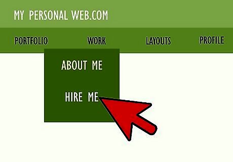 Include your contact information on a separate tab of the website. Create an additional tab titled “Contact,” “About Me,” or “Hire Me.” List your phone number, professional email, and include a note about your availability and the types of projects you’re taking on at the current moment. This way, random people that find your website will be able to reach out if they want to hire you. This will also ensure that folks have a way to reach you if they ever lose your business card or contact information.