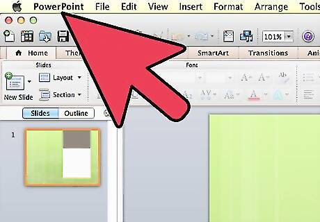 Open PowerPoint by clicking on Start => Applications (or All Programs) => Microsoft Office => Microsoft PowerPoint.