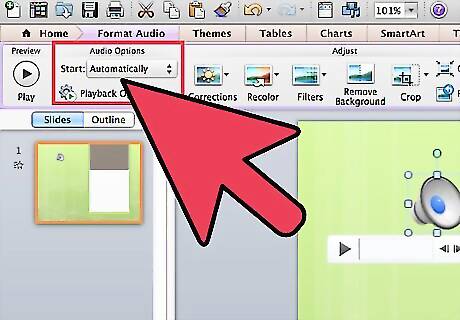Select either ‘Automatically’ or ‘When Clicked’ when the following prompt appears: “How do you want the sound to start in the slide show?”
