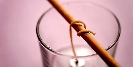 Stabilize the top of your wick so it stands up straight. Your wick needs to stand up straight and tall in the wax for your candle to burn properly. To keep it from flopping over, stick a strip of tape over the top of the glass, then poke a hole in the center. Thread your wick through the hole and you're all set. You can also use a dowel, pencil, or chopsticks to hold the wick in place—just wrap the end of the wick around whatever you're using and set it on top of the glass.