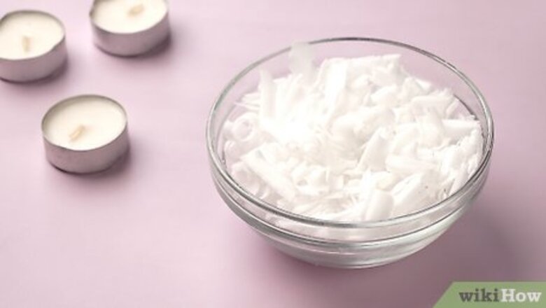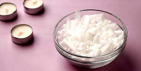 Measure out soy wax flakes before you prep your glasses. For each glass, you need twice the amount of wax flakes that would fill the glass. Just fill each glass you want to use with soy wax flakes. Then, dump those wax flakes into a heat-resistant glass or metal measuring cup and fill the glass again. Dump those wax flakes into the container and you're good to go. While you can make candles with different types of wax, soy wax flakes tend to be less expensive than other types and are easy to work with. They're also more environmentally friendly than other types of wax.
