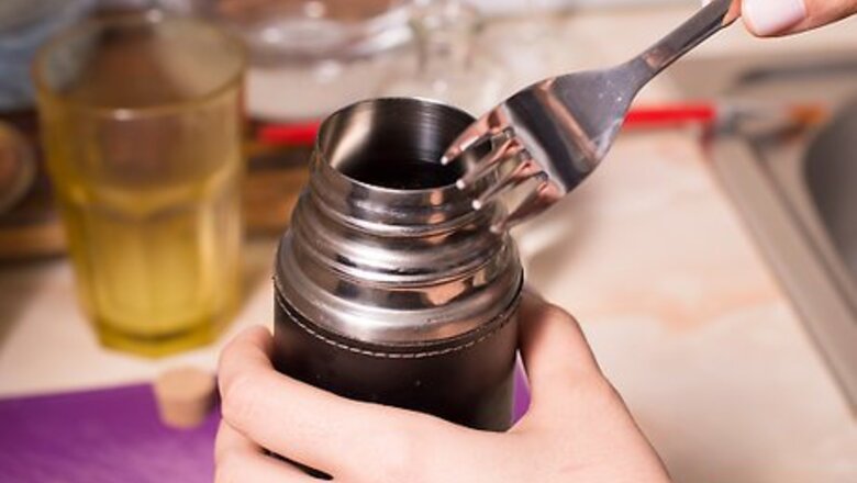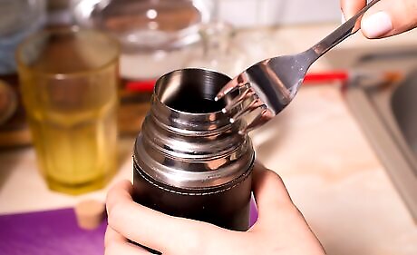 Add the raspberries into the cocktail shaker and pound/press it down with the muddle stick or fork.
