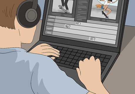 Edit. Half the fun of skateboarding is making those killer edits and posting them for the world to see. Unfortunately, it takes more than just a camera balanced on a stack of books, and the edits make the video really what it is. Once you have finished filming your entire movie, upload it to your computer. Your video will be a lot more captivating if there are special effects and music. Try to find music that fits the tricks being done. Finally, burn your video to a blank disc so it can be watched on a DVD player,or upload in on a video site like YouTube. Make sure it is not too long. If you want save some clips for your next video! Be sure to add music, it helps the video a lot.