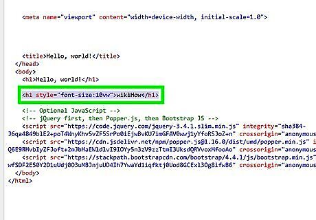 Specify the text size in relation to the viewport. Once your viewport is set, the text on your page will scale to fit the screen. However, fonts may display too large or too small if their sizes aren't specified in relation to the viewport. You can do this by defining the font size as a specific percentage of the viewport with the vw unit. This example tells the H1 headers to display at 10% of the viewport's width, no matter its size: