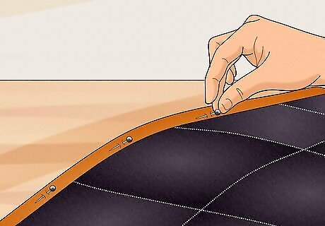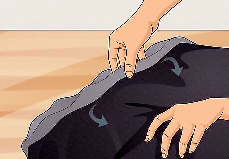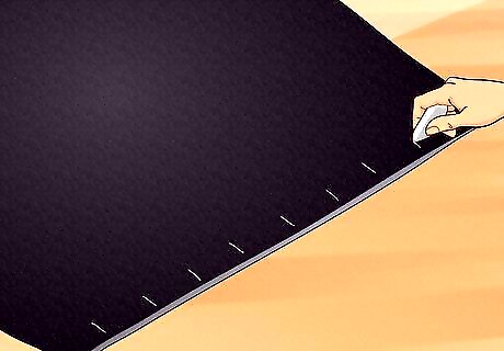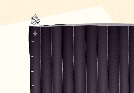 Wrap a strip around the edge of the blanket and pin it into place. Place the binding over the outer edge of 1 side of the blanket. Make sure that the raw edges of the binding are tucked under and there is an equal amount of fabric on both sides of the blanket edge. Place pins about 2 to 3 in (5.1 to 7.6 cm) apart along the binding. Make sure that the pins go all the way through the blanket fabric and binding on both sides.