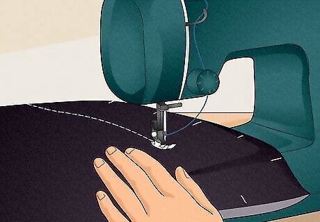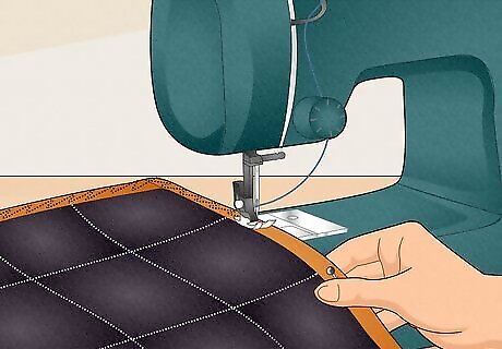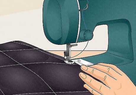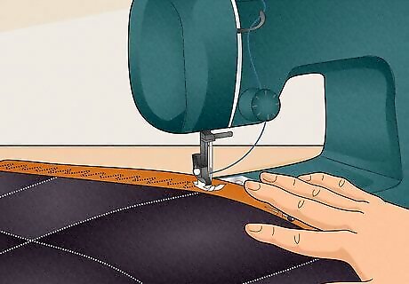 Sew along the edges of the binding strips with a wide zigzag stitch. Start sewing at 1 end of the binding strip with the needle directly above the folded edge of the binding. Then, sew all the way down the strip to secure it in place. Select the zigzag stitch setting on your sewing machine and increase the stitch width to the highest number setting on your machine.
