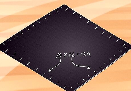 Multiply the number of columns on 1 side by the number on the other side. Multiply the total number of columns on the open edge of the blanket by the total number of columns on the adjacent edge. A column is the space between each of the marks along the edge, plus the 2 end sections. Count the spaces between the markings and end seams to find the total for 1 side, then do the same for the other side. Multiply these 2 numbers. For example, if you have 10 columns on 1 side and 12 columns on the other side, then your total number of squares would be 120.