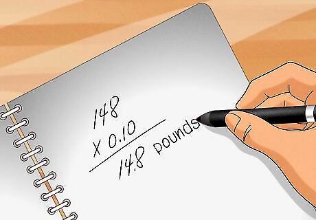 Multiply the weight by 0.10 to find out how much the blanket should weigh. Once you have determined the weight, multiply this number by 0.10. This will give you the amount for 10% of the person's weight. It is especially important to avoid making the blanket too heavy for a child. Err on the side of caution by sticking with 10% to calculate the weight of the blanket. If an adult's ideal body weight is 148 pounds (67 kg), then you could make your blanket 14.8 pounds (6.7 kg).