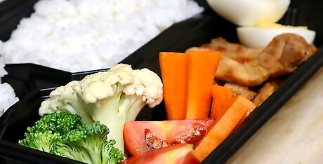 Feel free to experiment with proportions to build well-balanced meals. The traditional bento ratio is 4 parts rice, 2 parts protein, and 1-2 parts fresh veggies and fruit. However, you don’t have to make your bento boxes strictly traditional. The most important aspect of a bento box is that the meal is well-balanced overall, so just try to include something from each food group. If you're on a special diet that requires you to maintain a certain ratio of carbs to protein to veggies/fruit, this can be a great way to measure out proportions according to that diet.