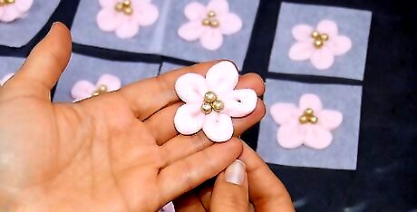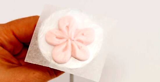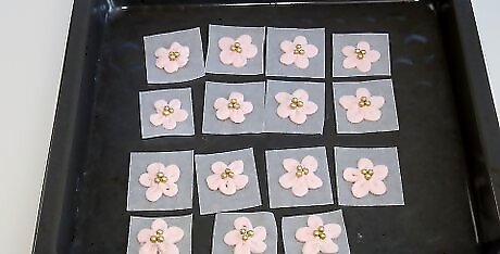 Add a dab of soft, icing on the back of your flowers. The icing can be plain, white icing, or it can be leftover pink, brown, or grey icing.