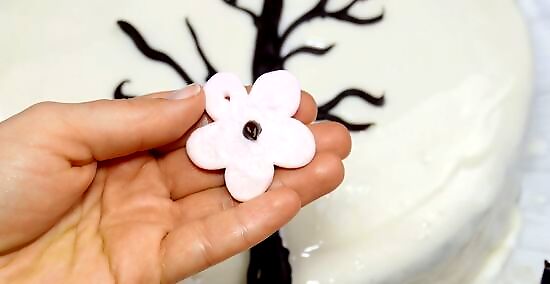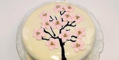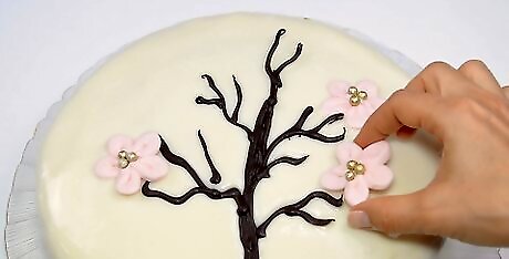 Allow the icing to dry. This includes the icing on the branch and the icing that's holding the cherry blossoms in place.