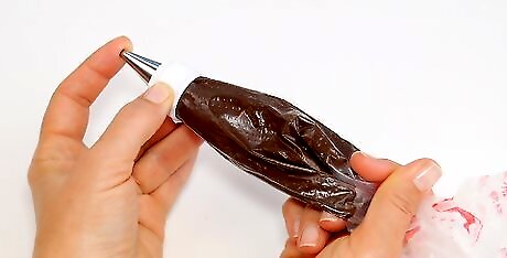 Fill the bag with brown or grey icing. Stiff icing would be ideal, but a medium-consistency would also be fine.