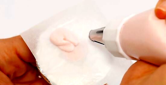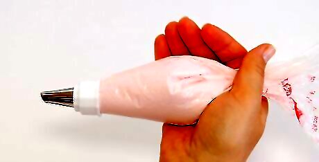Fill the bag with medium-consistency pink icing. You can use royal icing or buttercream icing, but it needs to be medium-consistency.